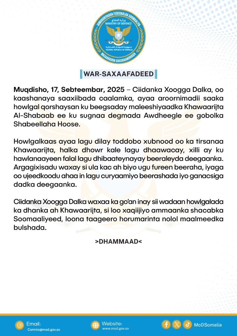 Ciidanka Xoogga Dalka oo kaashanaya Saaxiibada caalamka ayaa saaka howlgal qorshaysan ku beegsadayXubno ka tirsan Alshabaab ku sugnaa degmada Awdheegle. Howlgalka waxaa lagu dilay 7 xubnood oo ka tirsanaa Alshabaab